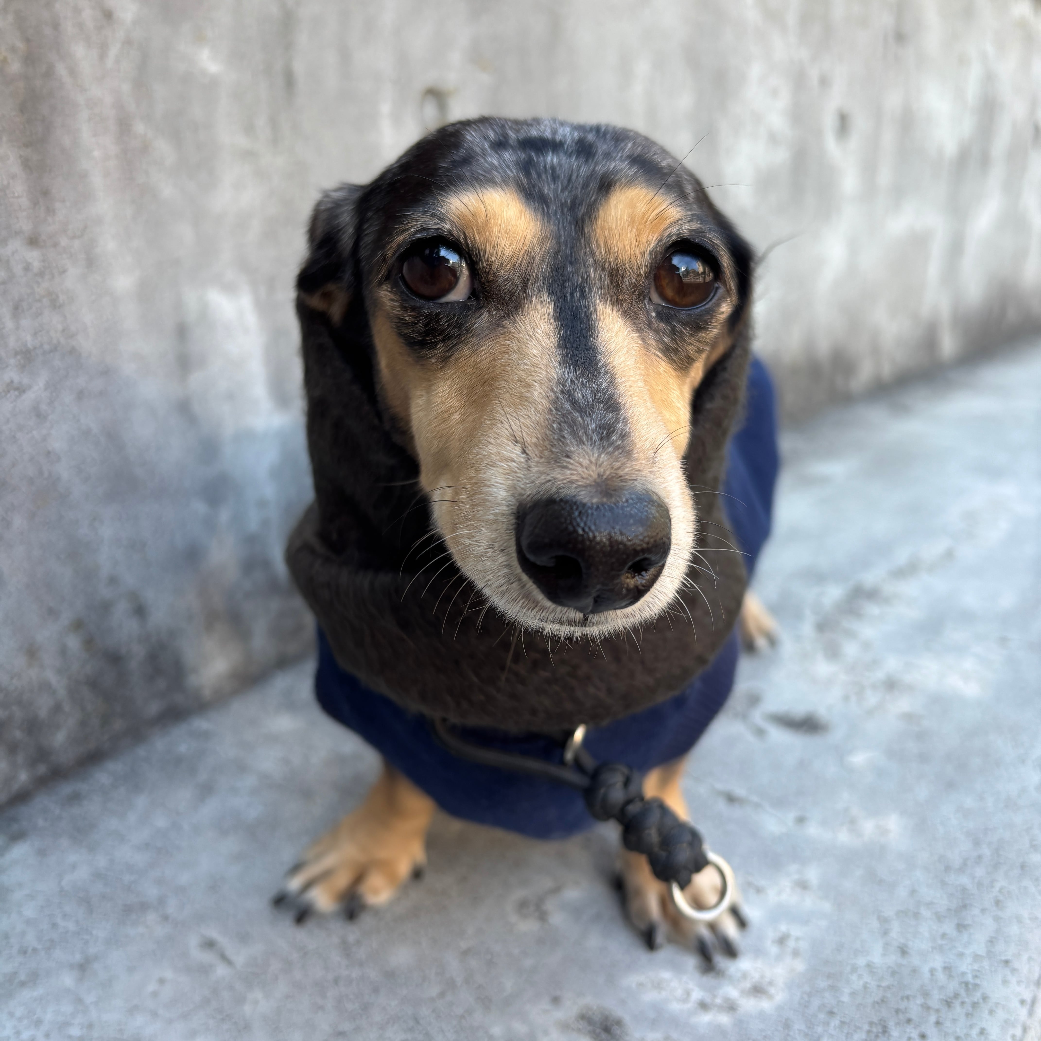 ※モデル犬は、4.2kgのダックスで、XSサイズを着用しております。