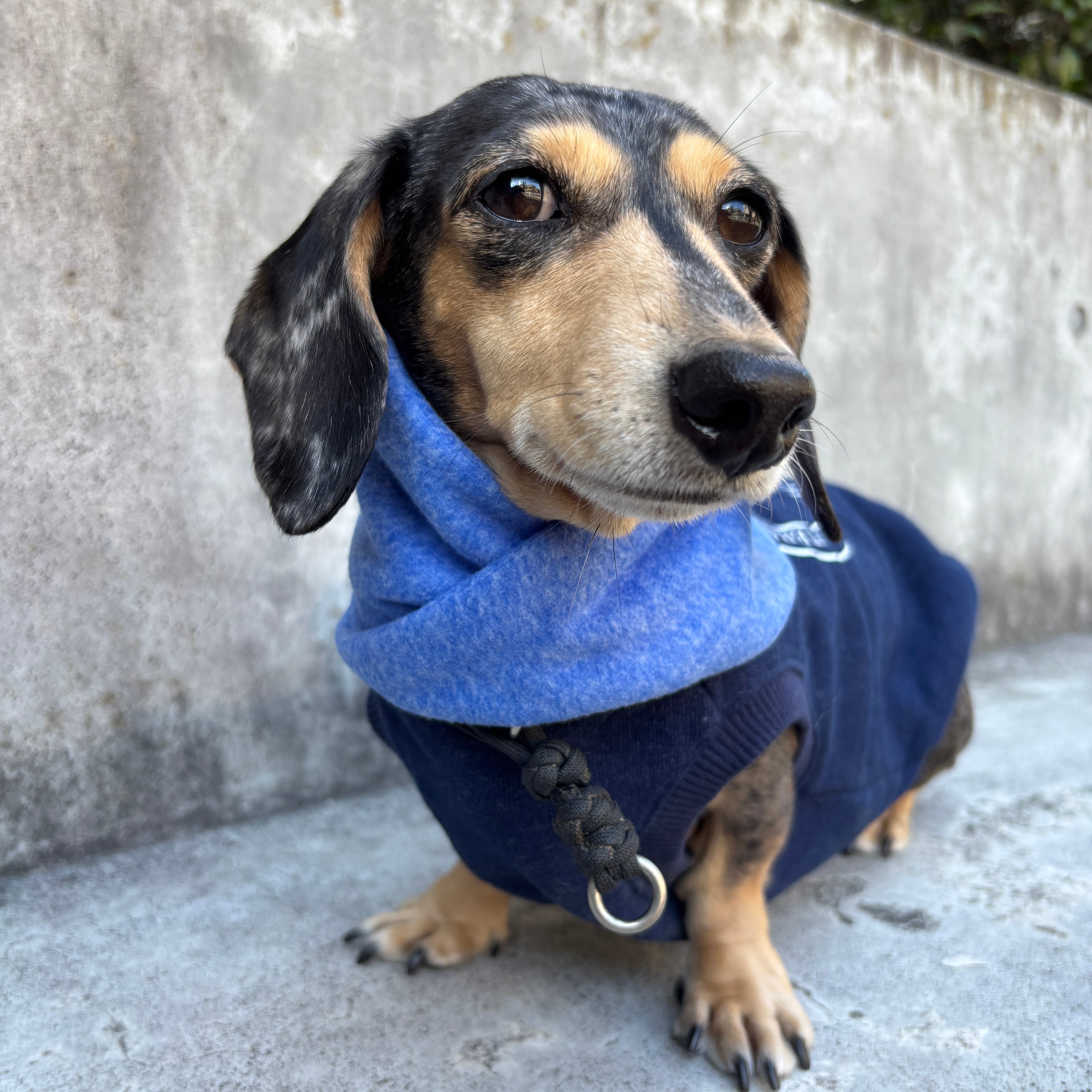 発色が綺麗なブルーにフリース生地で作ったスヌードです。
