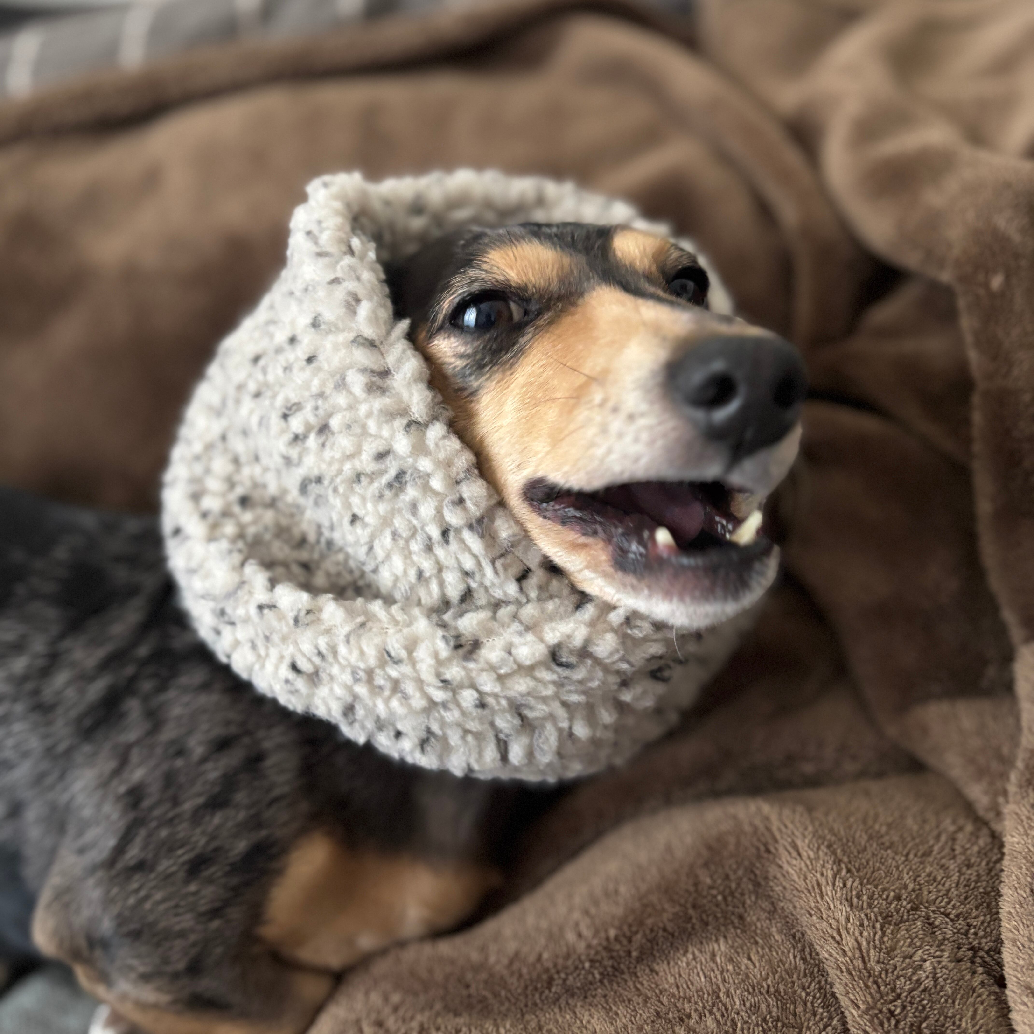 ボアなので、ボリュームがあって暖かいですし、とても軽いです。ボリューミーな見た目は、栄え感もあってすごくかわいいです。落ち着いたカラーなので、お持ちのお洋服やリードに合わせやすいのも嬉しいポイントです♪